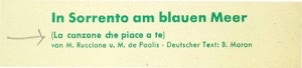 Gli spartiti de «La canzone che piace a te» in varie lingue. Da sinistra: tedesco (copertina e interno) spagnolo e un dattiloscritto della traduzione in svedese