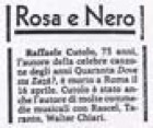 Pubblichiamo in questa pagina i ritagli stampa trovati tra le carte di Raffaele Cutolo. Si tratta, pertanto, di una raccolta né organica, nè completa, ma tuttavia essa costituisce una testimonianza valida sia del costume del tempo, sia del valore delle opere di Cutolo. Per questo motivo l’elenco comprende anche le poche recensioni negative, dovute prevalentemente - come si riconoscerà in alcuni casi dalle testate su cui erano state pubblicate - a presupposti di natura ideologica, poco inclini - anche in quella giovane democrazia della fine anni Quaranta - ad accettare la satira politica.